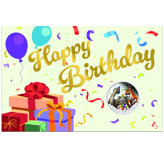 Монетата показва емблематични австралийски животни, ему, коала и кенгуру, всички изобразени в наситени и красиви цветове. Всеки един е представен със забавна парти шапка, която да съответства на тематичното парти.