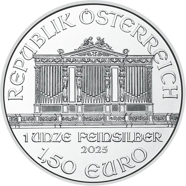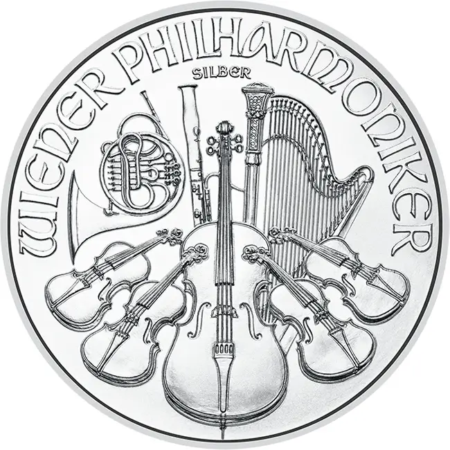 Съдържаща една унция чисто сребро и нареждаща се сред най-обичаните инвестиционни монети в света, Виенската филхармония е наистина много специална. От едната страна на това впечатляващо произведение са изобразени инструментите на световноизвестния оркестър, от който идва и името му. От другата страна е изобразен органът на Златната зала на виенския Музикферайн, където се помещава оркестърът.