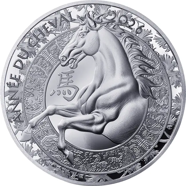 Енергичният Кон е животното от лунния зодиак през 2026 г. Той обещава смели действия, амбиция и огнена харизма. Тази сребърна монета отсечена от Monnaie de Paris изобразява това страстно създание.