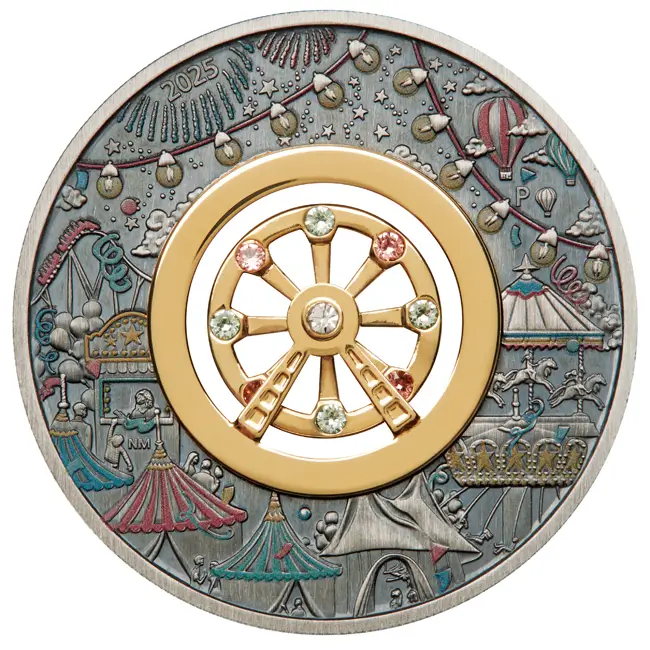 Невероятна монета с динамичен елемент в центъра, представляващ Панаирно Колело, по-известно у нас като Виенско.