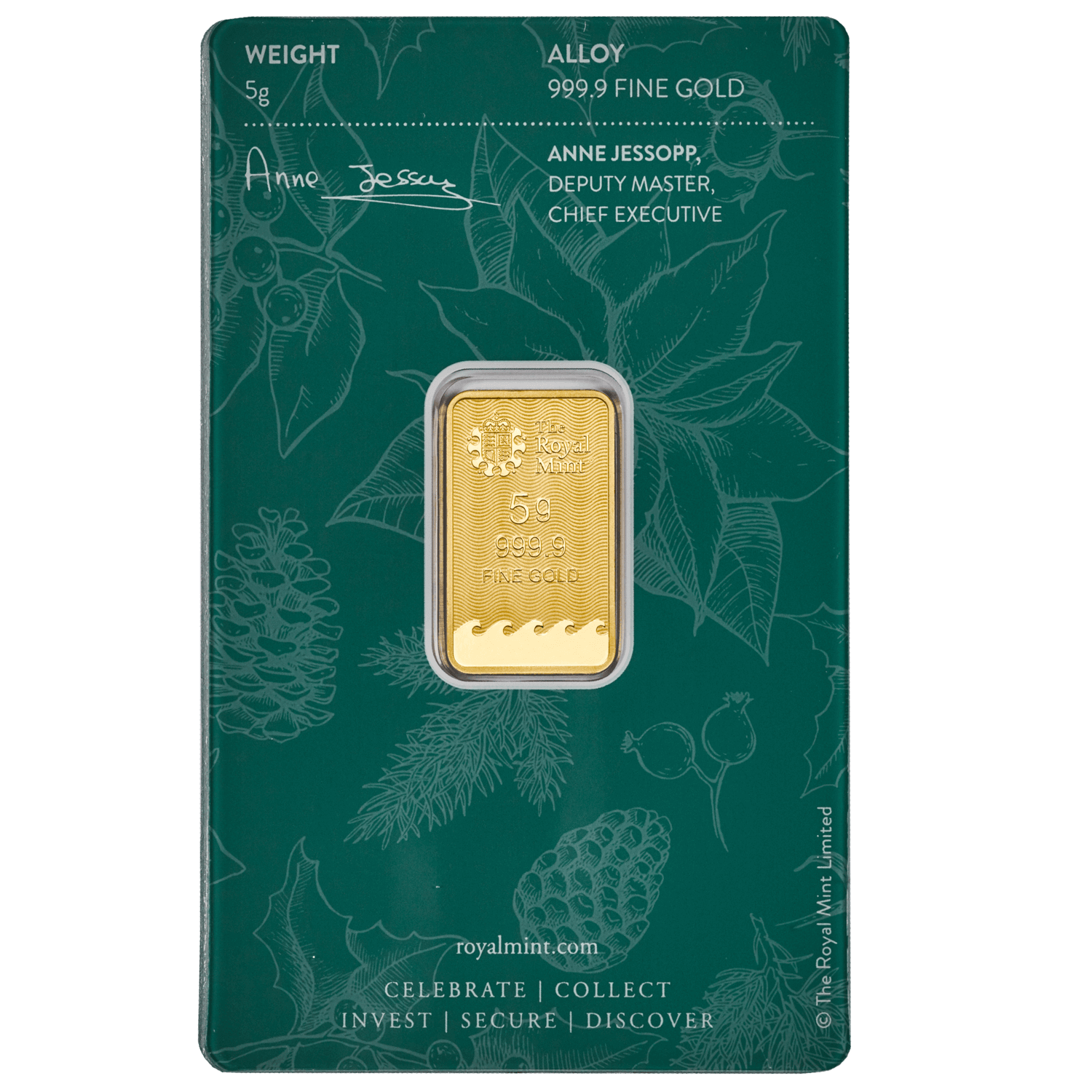 Всяко златно кюлче от 5 г съдържа изображение на Британия – трайна емблема на сила и стабилност. Появила се за пръв път върху монетите на император Адриан, Британия днес е модерното лице на британските кюлчета, разпознаваемо в цял свят и надежден символ на качеството на британското монетосечене.