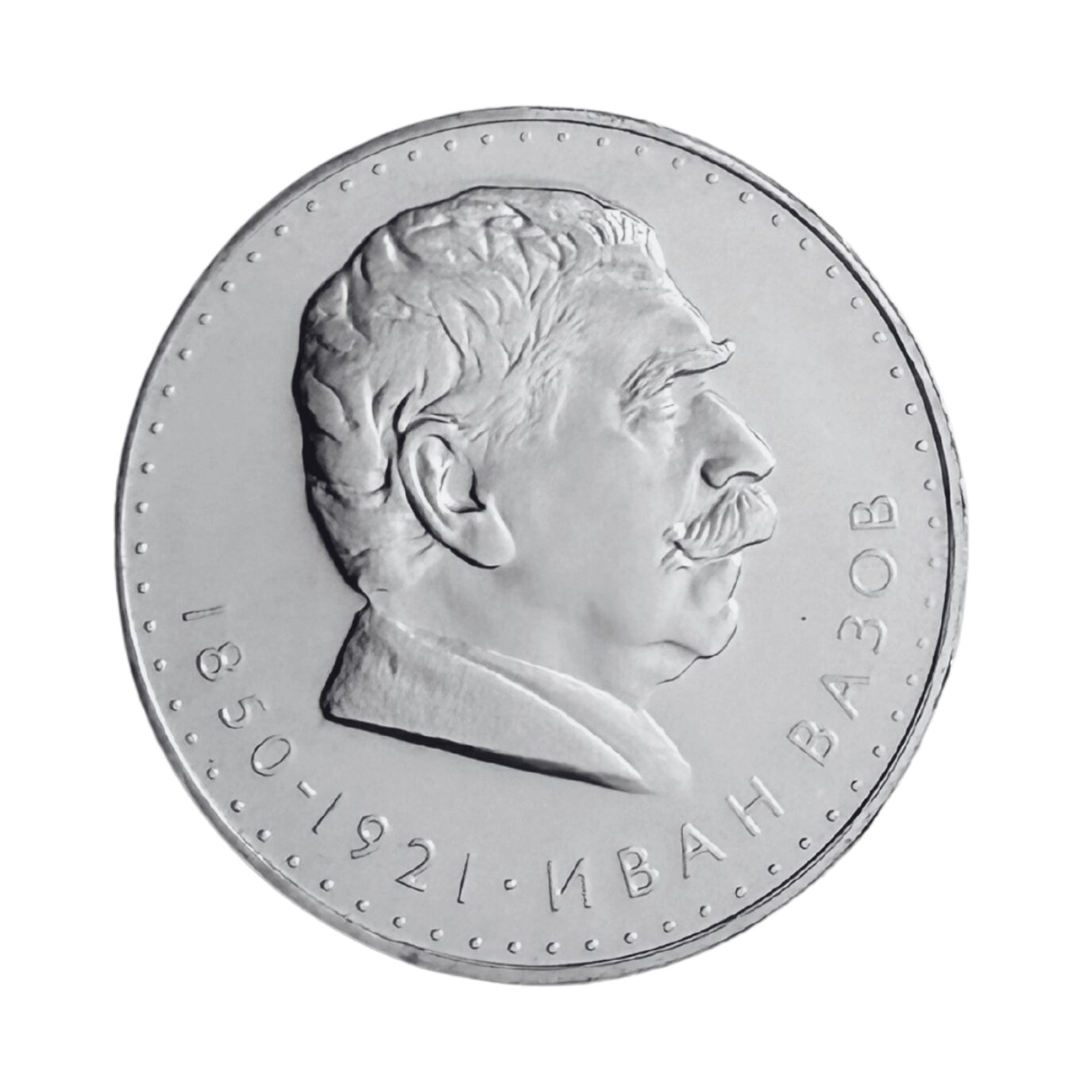 На обратната страна на монетата е изобразен Иван Вазов. Околовръст има надпис „1850-1921 • ИВАН ВАЗОВ”. Композицията завършва със зрънчест кръг.