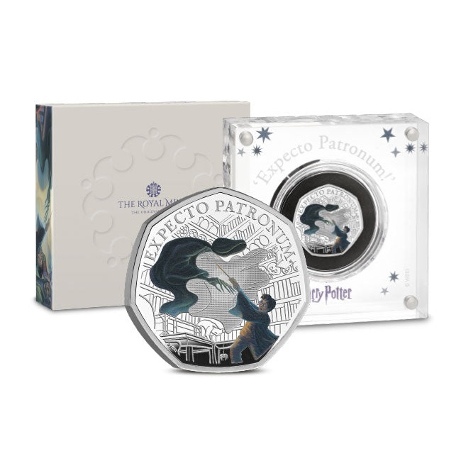 Тази Хари Потър- Експекто патронум Великобритания Сребърна Mонета 2025 празнува емблематичната сцена от Хари Потър и Затворника от Азкабан. На гърба ѝ е изобразен младия магьосник, прилагащ мощно отбранително заклинание, което отблъсква Дементори. Дизайнът е отличителен заради цветното си покритие, улавящо всеки малък детайл. Придружена със сертификат за качество и автентичност.
